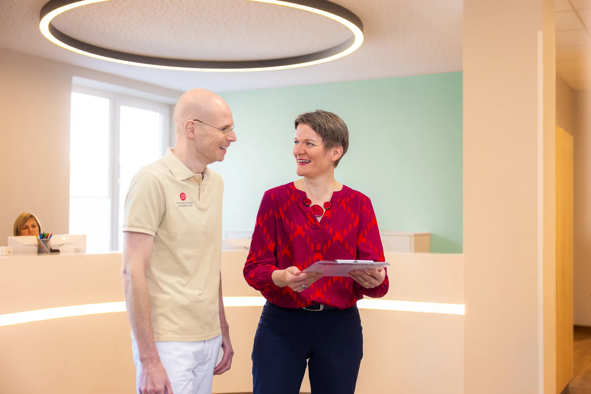 auf dem Überweisungsschein und in Ihren Unterlagen und vereinbaren Sie einen Termin für den Patienten telefonisch oder über die Online-Rezeption.